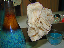 My step Daughters mother and I are really close. She actually just moved 2 blocks away and I love it! BUT she is always working and doesn't have time to craft it up so I have been helping her to decorate a little at a time (budget wise of course!) Here are a few of the little things that I have come up with so far! We painted her bathroom a turquoise color and her daughters room a pink and went from there! The first up is this amazing idea I saw a picture of and put my own twist on it!